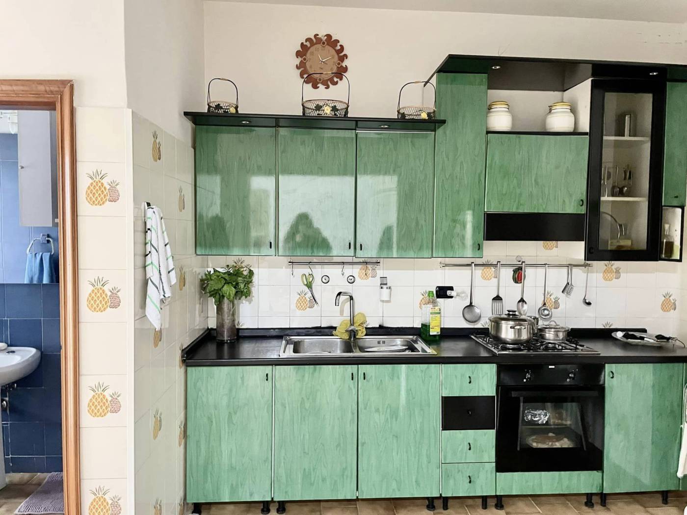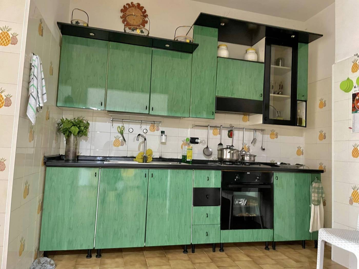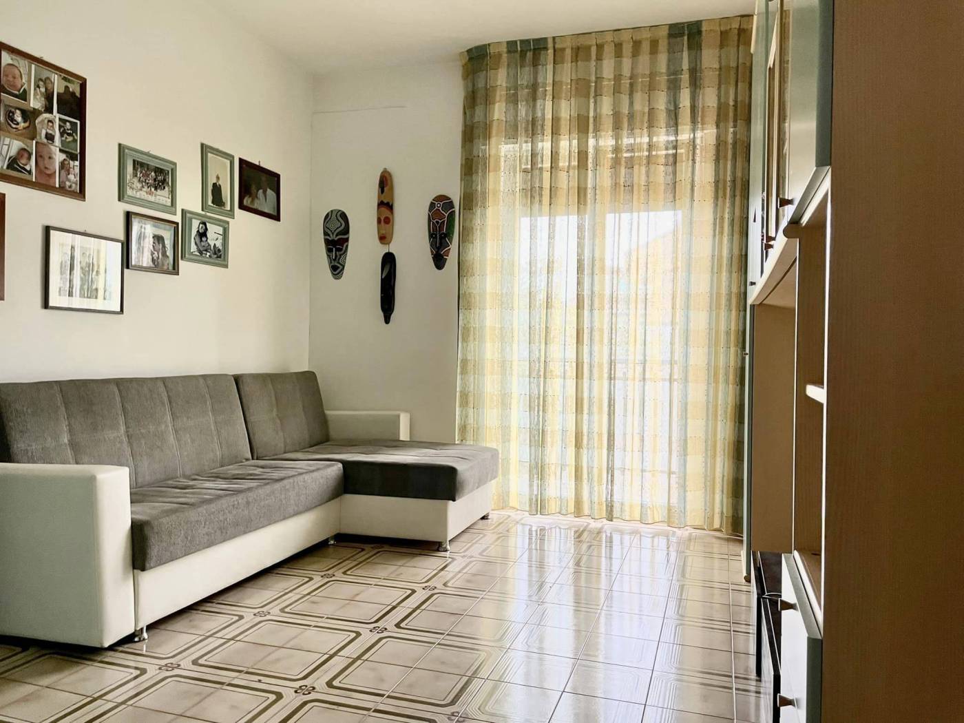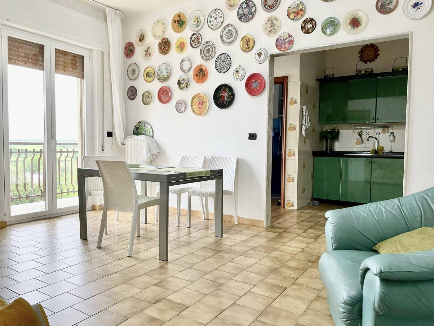 Luminoso ed ampio appartamento abitabile mq 135 al primo piano senza ascensore, zona via Acquaviva, così composto : Ingresso su corridoio, soggiorno, cucina/sala pranzo con cucinotto, doppi servizi, due camere da letto e ripostiglio. Ampio box auto al piano seminterrato di mq 60 + tavernetta. Doppio affaccio con quadrupli balconi. Termoautonomo.